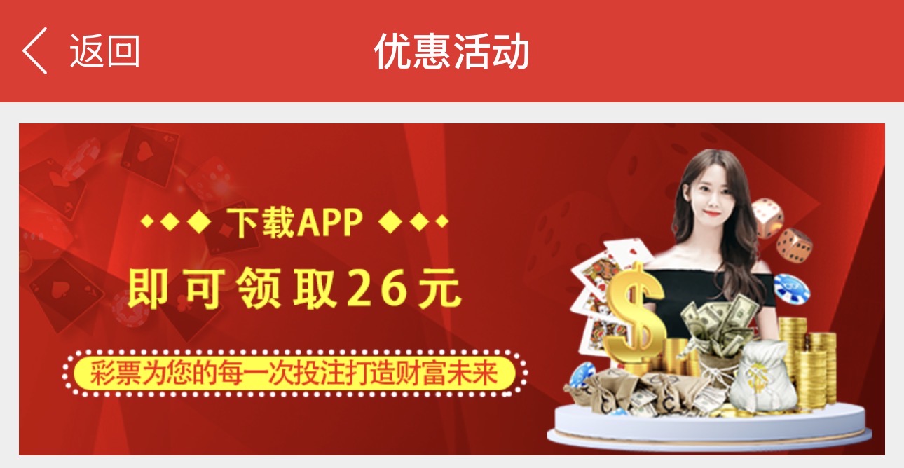 注册绑定银行卡秒送26彩金只能彩票一百提款