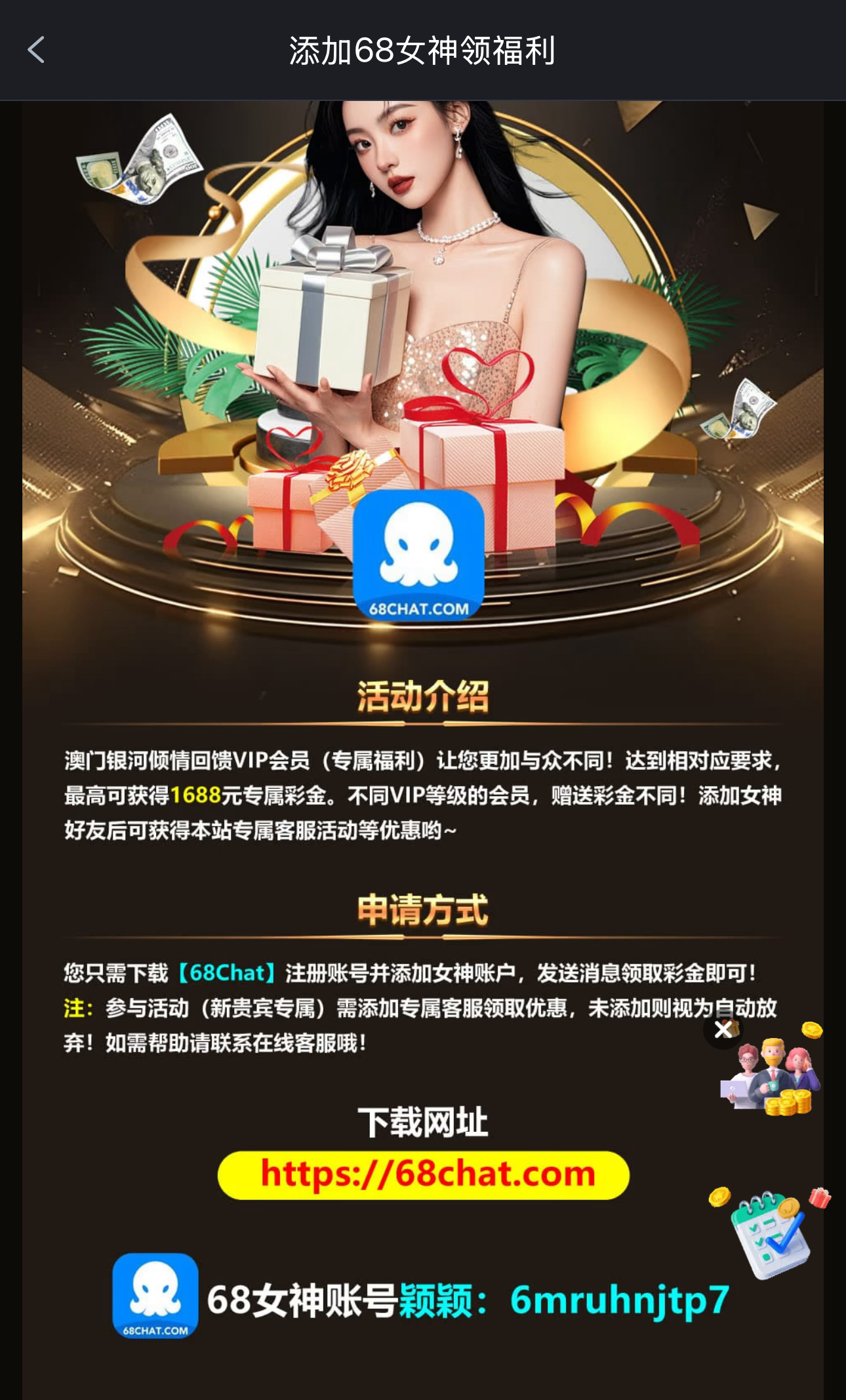 注册登录添加女神账号申请送白菜,可以去试一下