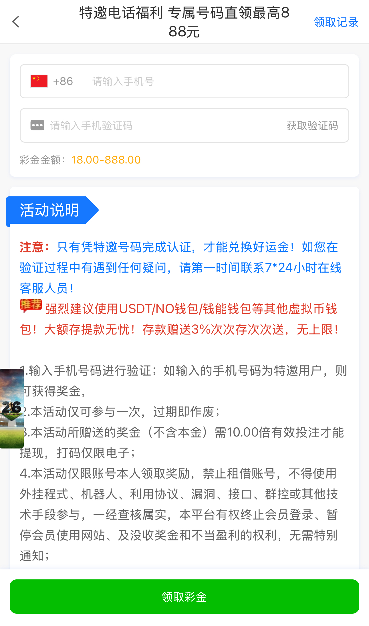 碰瓷特邀,新用户优惠大厅找到活动入口自助验证手机号是特邀秒送18-888